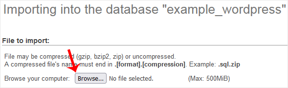 Under File to Import, click on Browse and select SQL file from your computer.